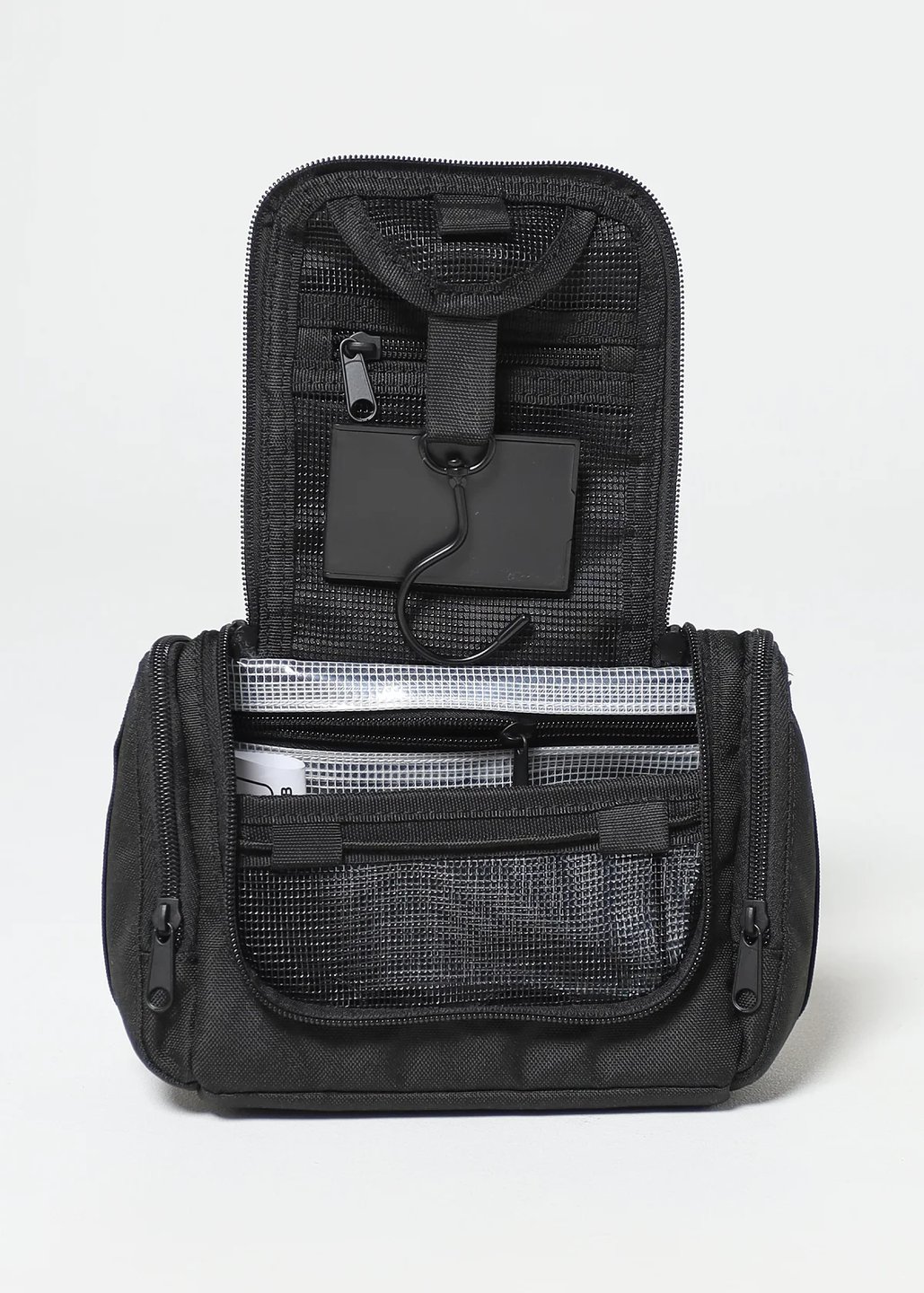 Небольшое съёмное зеркало. Крючок для подвешивания сумки в раскрытом состоянии.