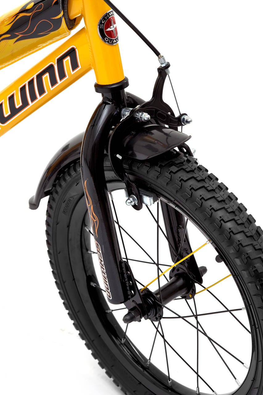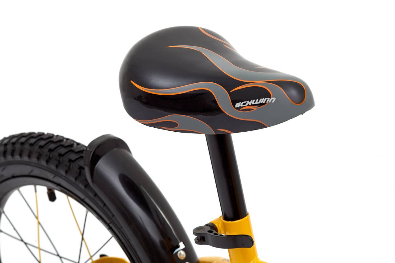 Крутой огненный байк Schwinn Scorch, выполненный в желто-черном цвете – вот о чем мечтает Ваш малыш! Седло и руль регулируются по высоте, и велосипед будет расти вместе с ребёнком. Мягкая накладка на верхней трубе защитит от травм во время катания. Два вида тормоза, ручной и ножной, позволяют Вашему ребёнку постепенно переходить на взрослые стандарты. Полноразмерная защита цепи предохранит одежду от загрязнения. В комплекте идут дополнительные колёса для обучения езде на начальном этапе катания. Schwinn® SmartStart - новая концепция в разработке детских велосипедов, учиться кататься стало проще и веселее!