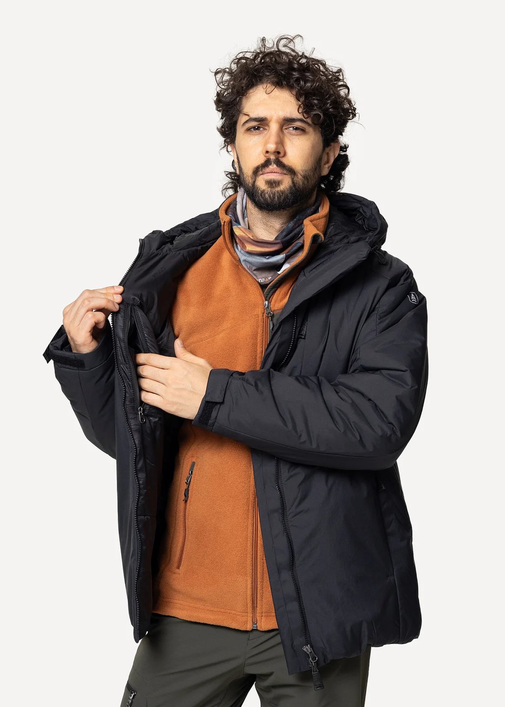 - Двухзамковая центральная молния с тёплой внутренней ветрозащитной планкой