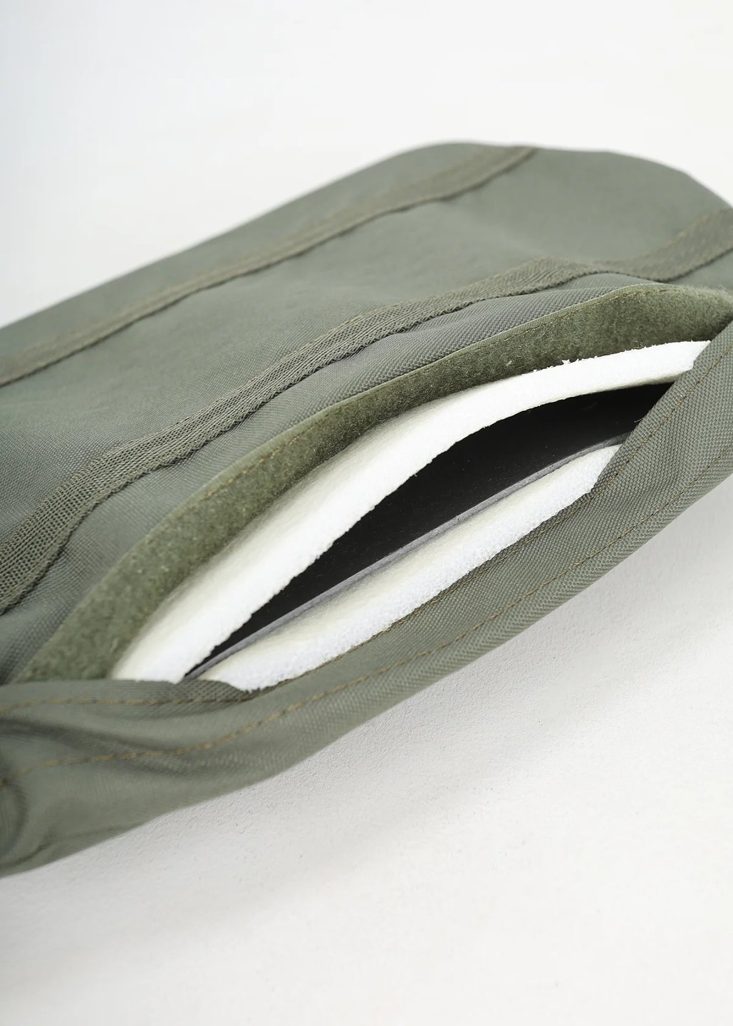 - Сверху с внутренней стороны чехла вход для пены, застегивается на длинную горизонтальную липучку