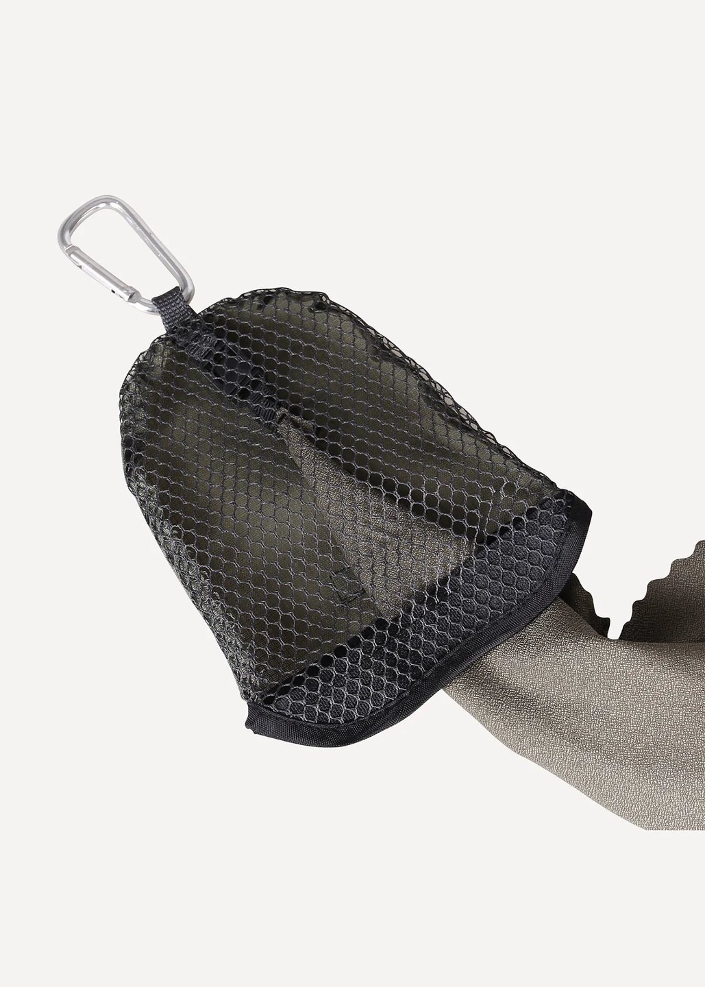 В сложенном виде убирается в маленький мешок с карабином. Чехол можно отстегнуть, а можно оставить пристёгнутым и продолжать пользоваться полотенцем.