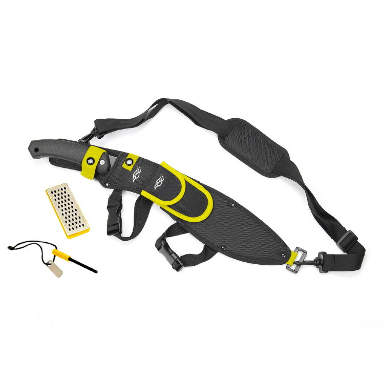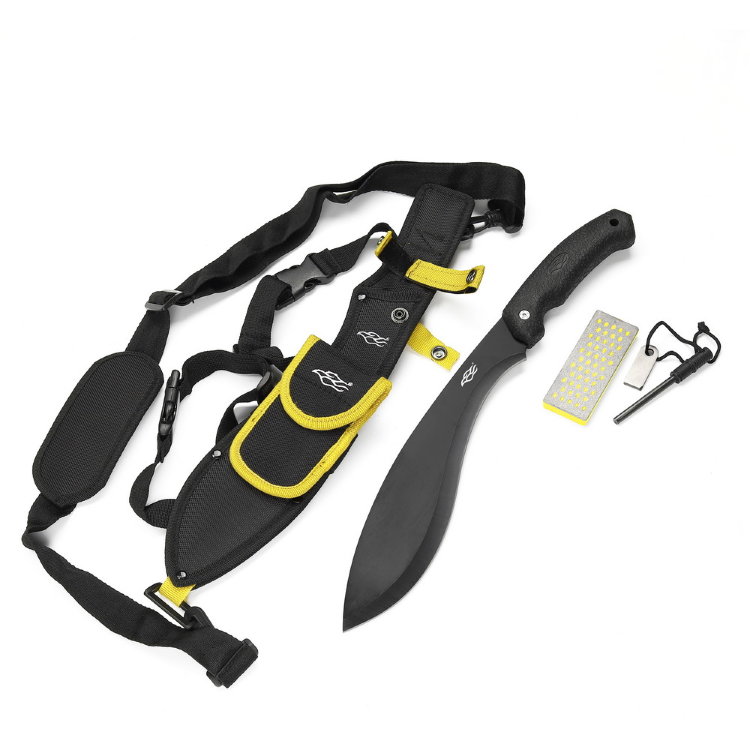 В комплекте с мачете Firebird F804-FS производитель также предоставляет нейлоновый чехол для транспортировки с регулируемым ремнём, небольшую точилку и огниво. Благодаря такой комплектации вы всегда будете готовы к самым разнообразным обстоятельствам, возникающим в походных условиях.