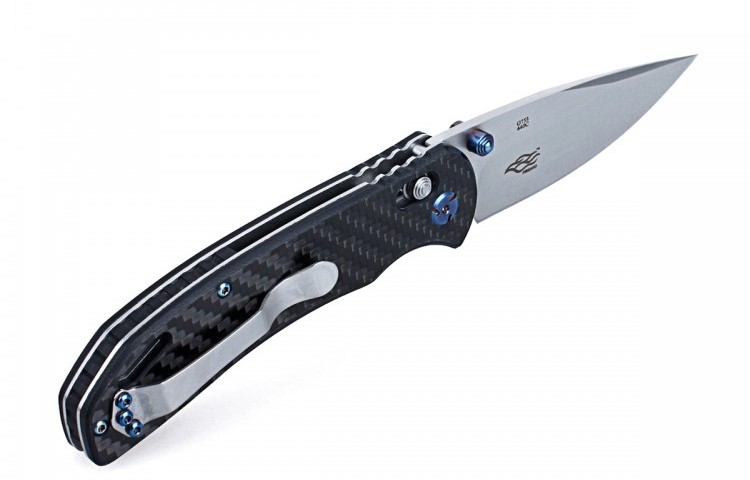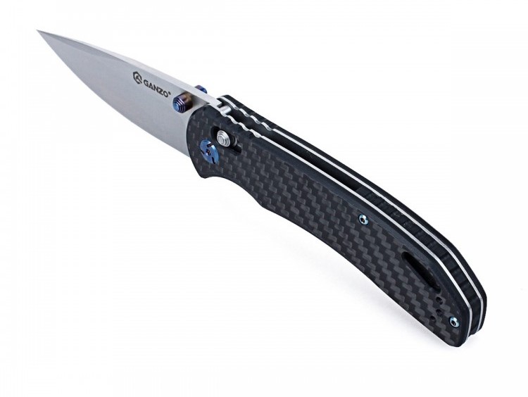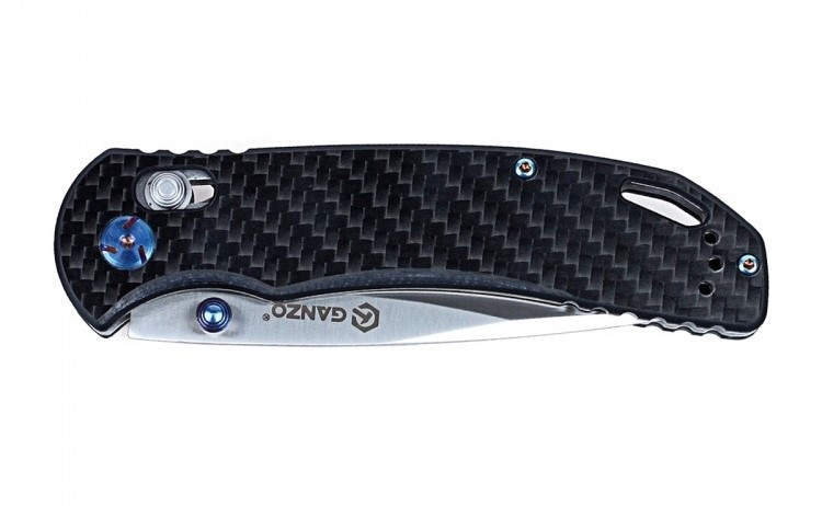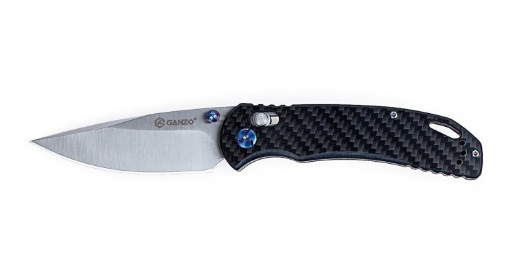 Также, важной деталью ножа Ganzo F7531-CF является замок, который блокирует ход лезвия по оси. Клинок удерживается в полностью открытом или закрытом состоянии. Случайное изменение этого положения исключается и пользователь может быть уверен в своей безопасности во время перевозки ножа, не беспокоиться о возможности его случайного складывания во время работы. Название модели замка, которую производители выбрали для данного ножа — Axis.