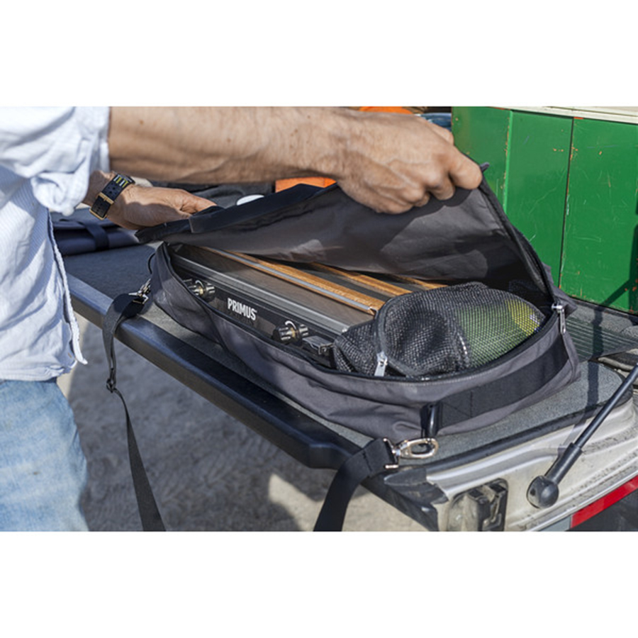 Сумка для газовой плиты, изготовлена из высококачественного поликоттона и имеет отдельные карманы для газа, аксессуаров и прочих нужных вещей.