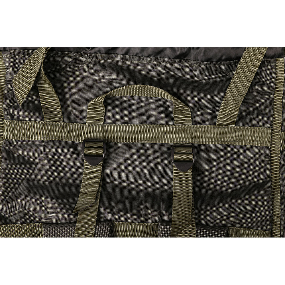 - Объём 100 л для бивачного снаряжения и амуниции с загрузкой до 25 кг. На обратном пути можно в рюкзак сложить добычу