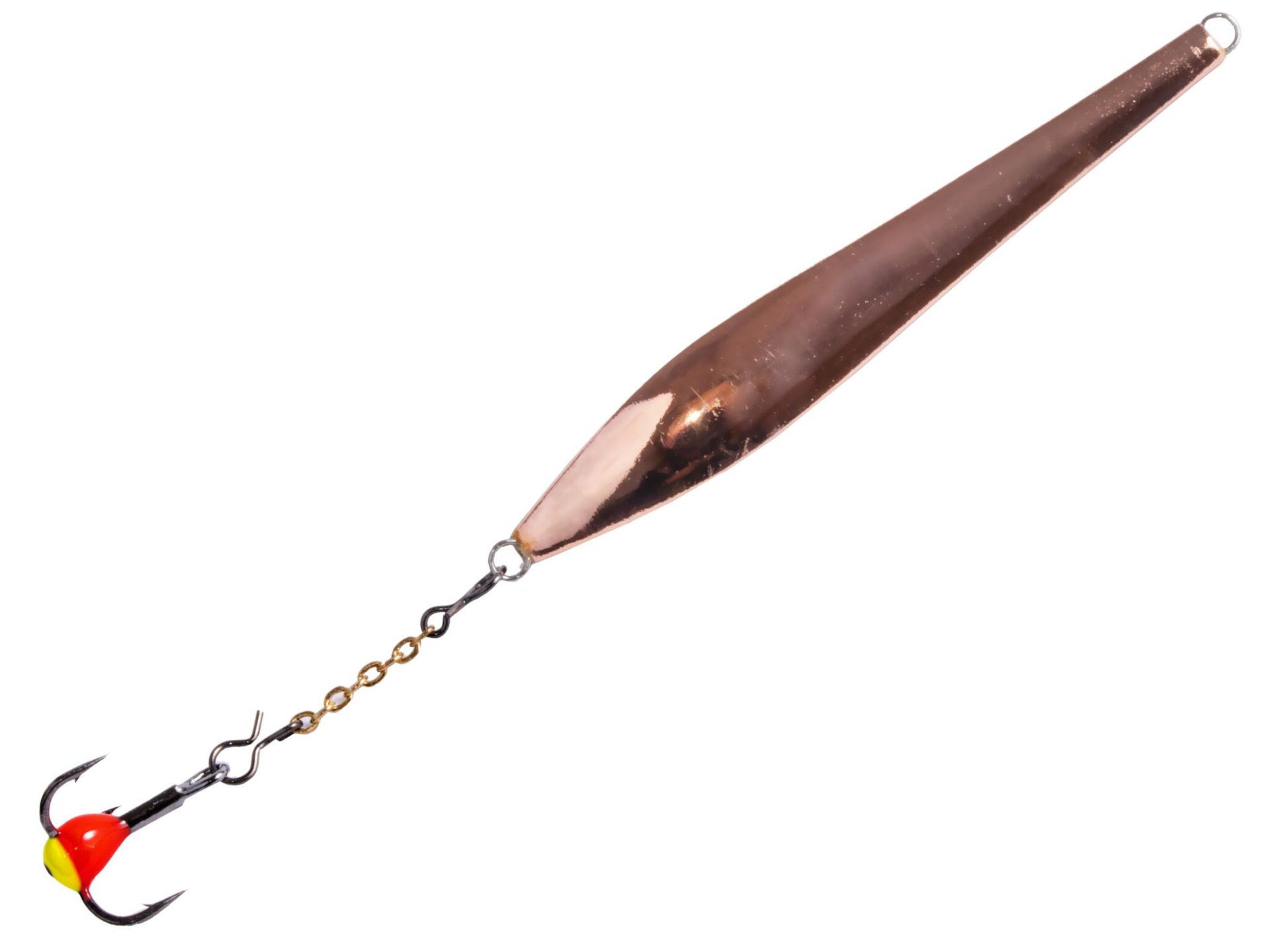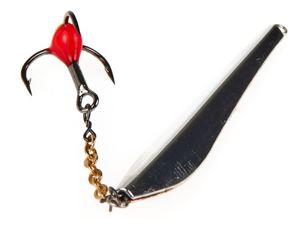 С каждой стороны блесны пластины из разных металлов блестят и переливаются при игре и активнее привлекают рыбу.