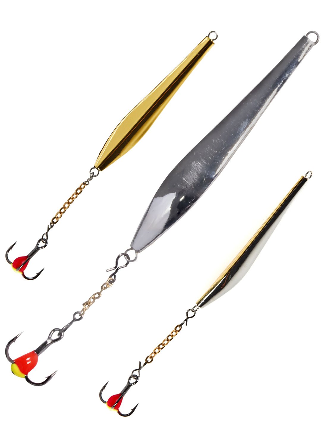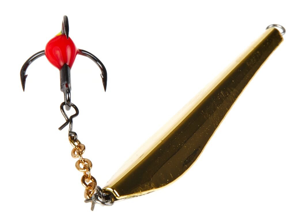 С каждой стороны блесны пластины из разных металлов блестят и переливаются при игре и активнее привлекают рыбу.
