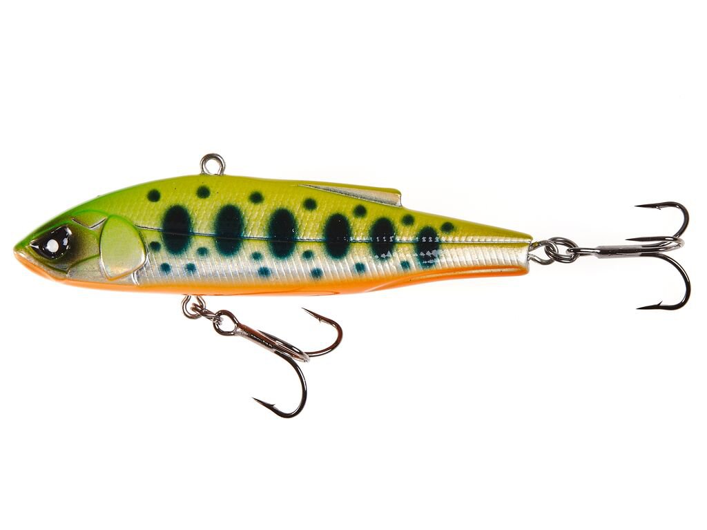 Крепление расположено на спине приманки, что типично для представителей этого класса. Плоские бока приманки интенсивно вибрируют при анимации, стимулируя хищника на поиски раздражителя. На паузах воблер медленно заглубляется, создавая отличный момент для атаки.