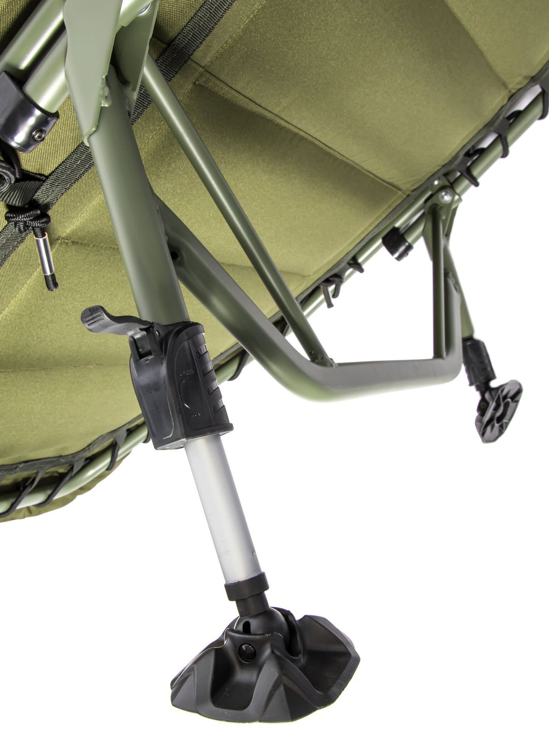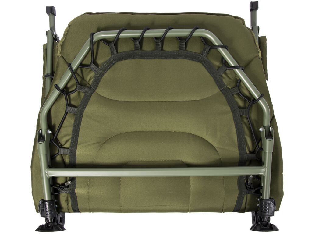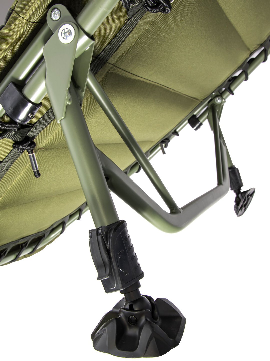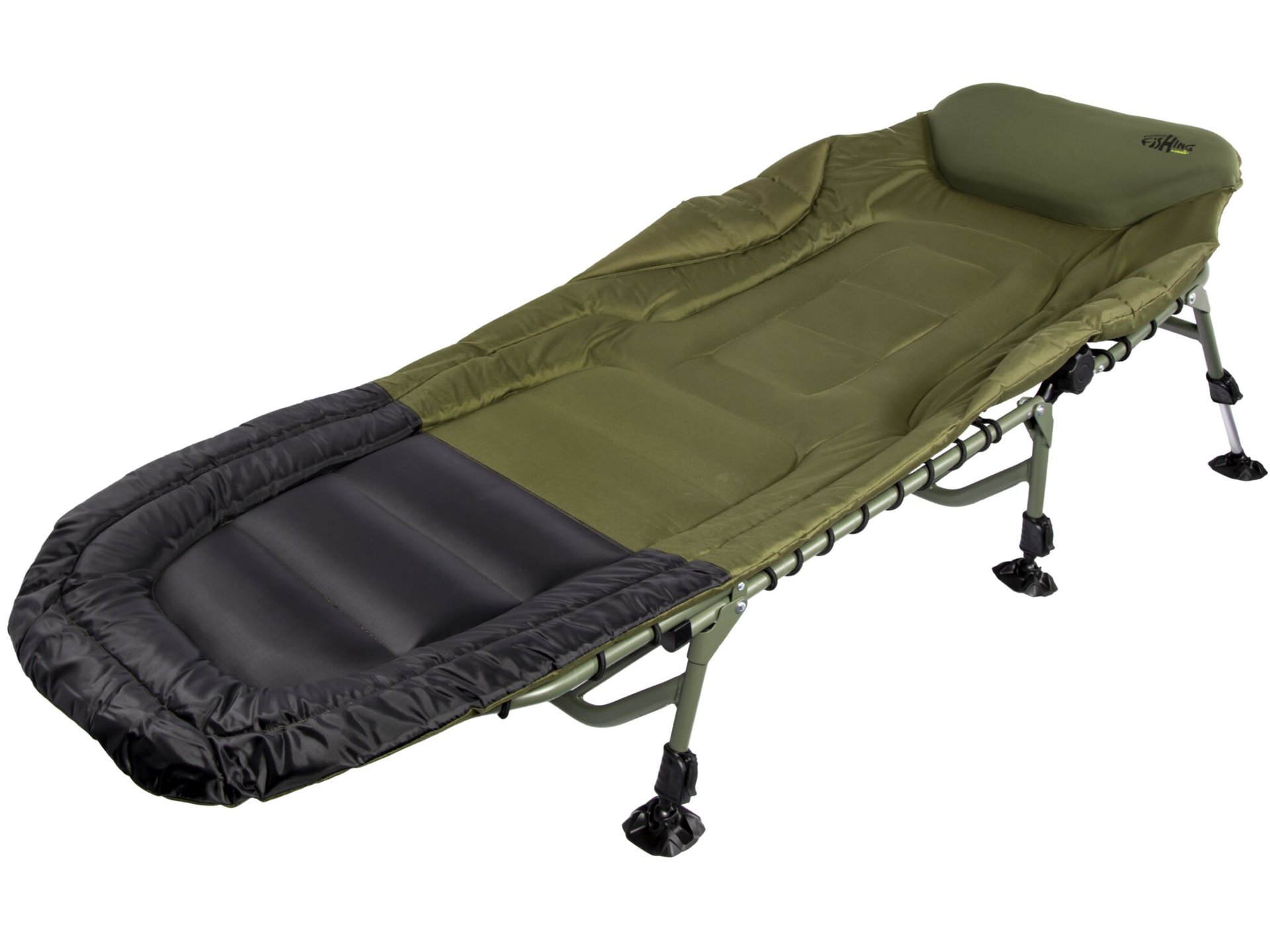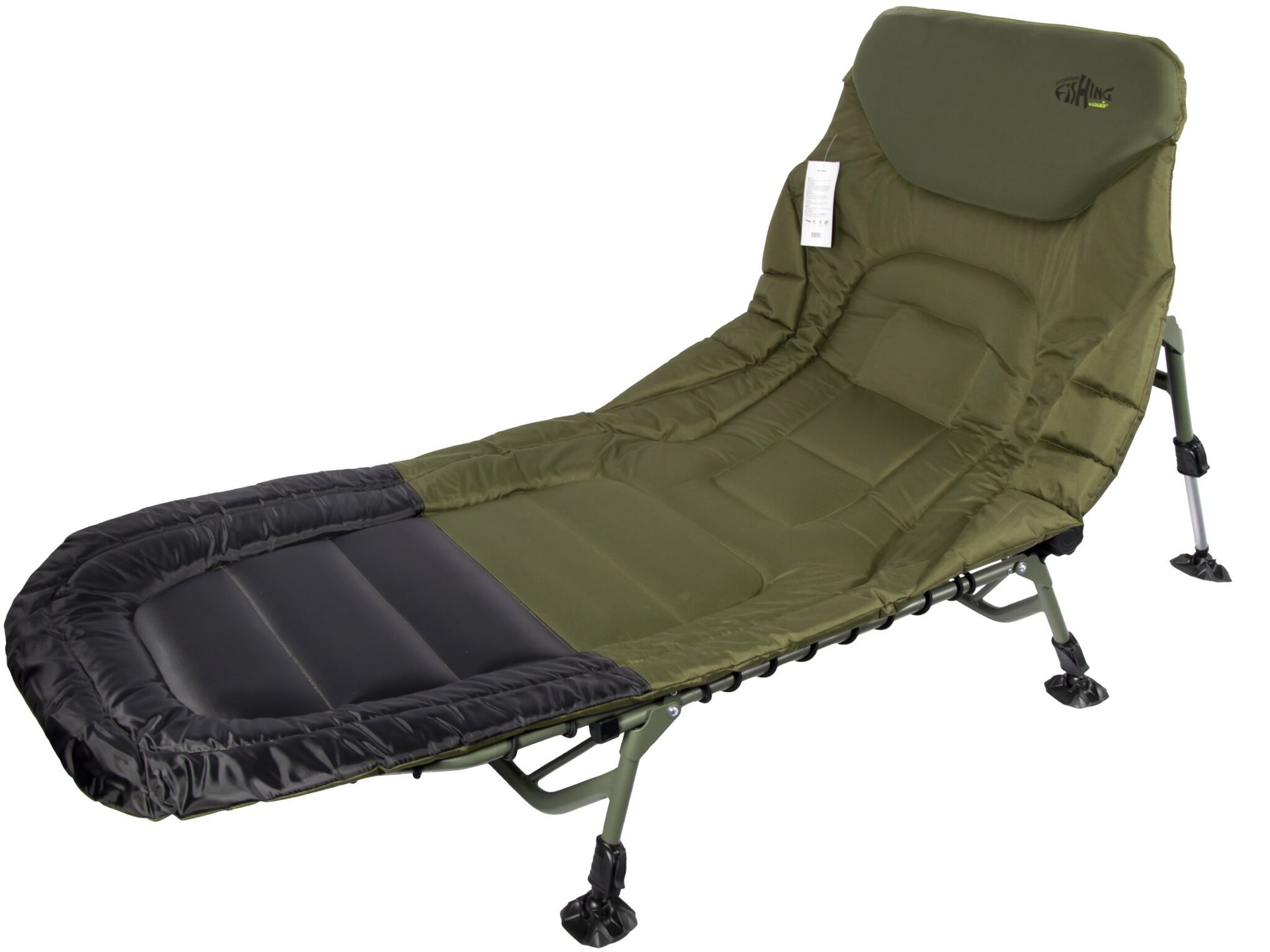 Кровать складная. Рама с эластичным матрасом. Сложная форма спинки для дополнительного комфорта, мягкая подушка, шесть независимо регулируемых по высоте ножек с широкими опорами.