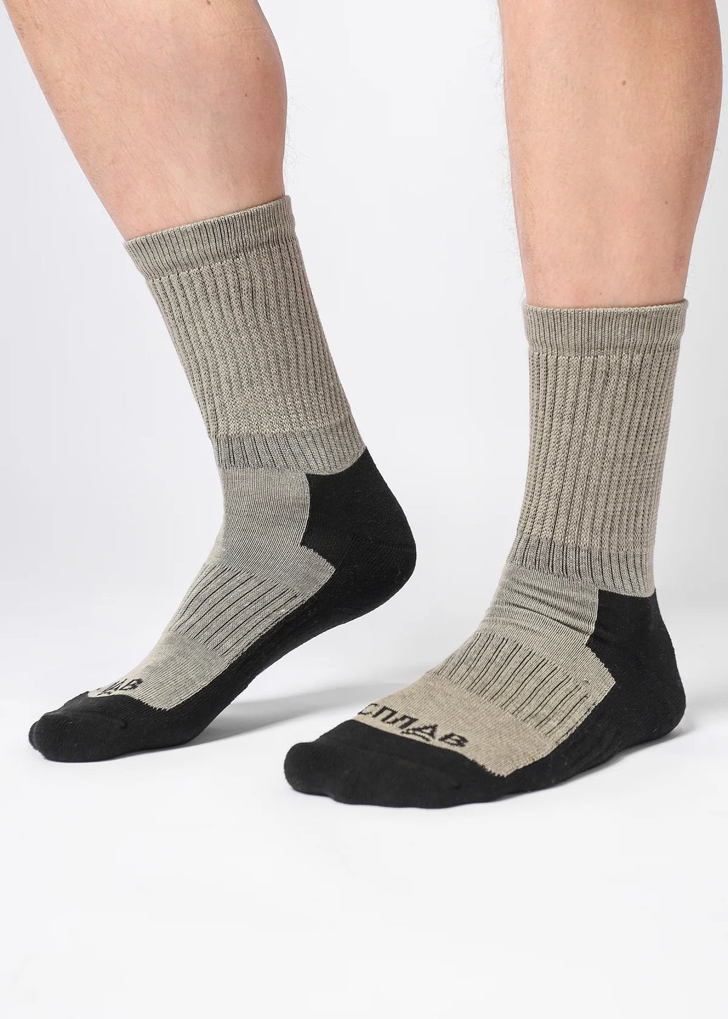 Используются как основные носки для длительных выходов в мягкую погоду или как внутренние под теплые.