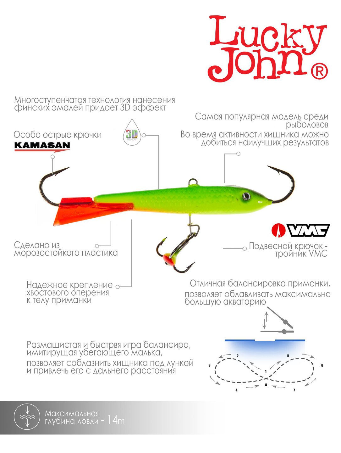 Lucky John Classic - самая популярная модель балансиров среди рыболовов. Жёсткий пластиковый хвостик придаёт приманке более размашистую и быструю игру. Во время активности хищника, с этими приманками можно добиться наилучших результатов.
