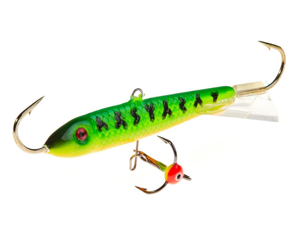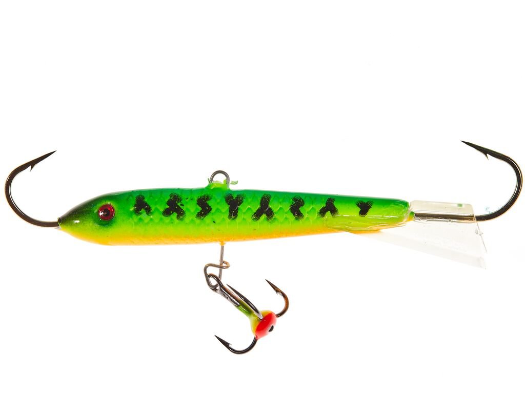 Порой щука или судак реагируют только на крупные приманки, активно перемещающиеся в придонном слое. Эти, достаточно крупные балансиры длиной 90 мм, облавливают большую площадь под лункой и издалека привлекают хищника. Не забывайте, что чем крупнее приманка, тем большая пауза нужна ей между взмахами удилища.