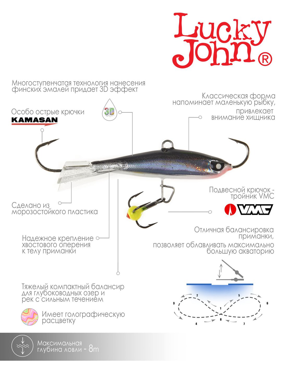 Балансир Lucky John Nordic - тяжелый, компактный идеально сбалансированный балансир, специально разработанный для глубоководных озер и рек с достаточно сильным течением