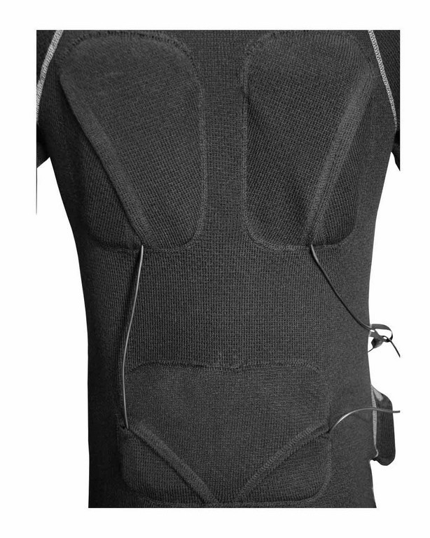 - В фуфайке один греющий элемент расположен на спине в области поясницы и два на лопатках