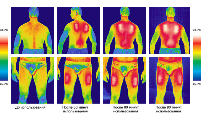 - В кальсонах два греющих элемента расположены на передней стороне бедра