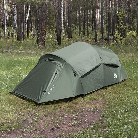 Комфортная трехместная палатка Splav Capri 3 тоннельного типа с двумя входами.