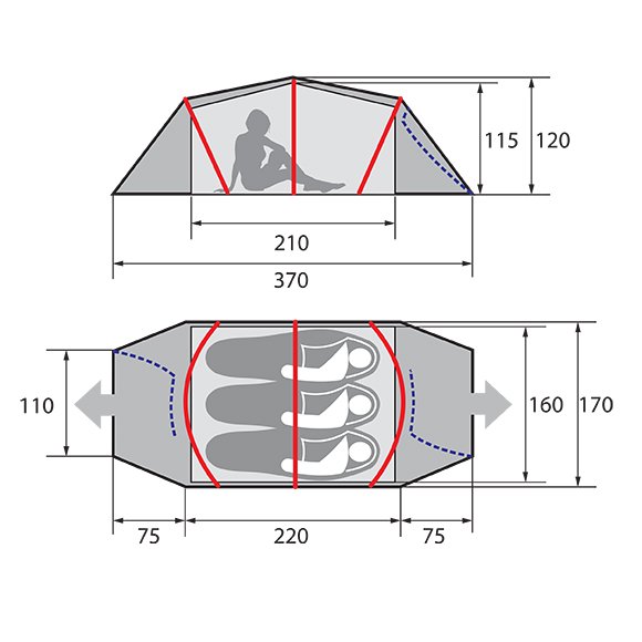 - Входы и вентиляция внутренней палатки продублированы противомоскитной сеткой;