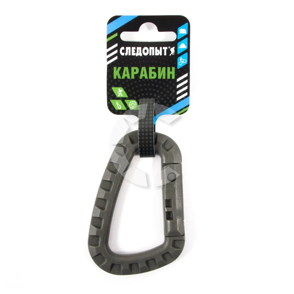 Карабин — универсальное устройство для крепления и фиксации туристического снаряжения, сфера применения обширна — от запланированного использования в качестве подвеса, так и, к примеру,для быстрой замены в полевых условиях сломавшегося фастекса на рюкзаке.