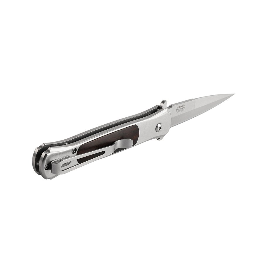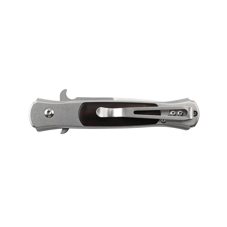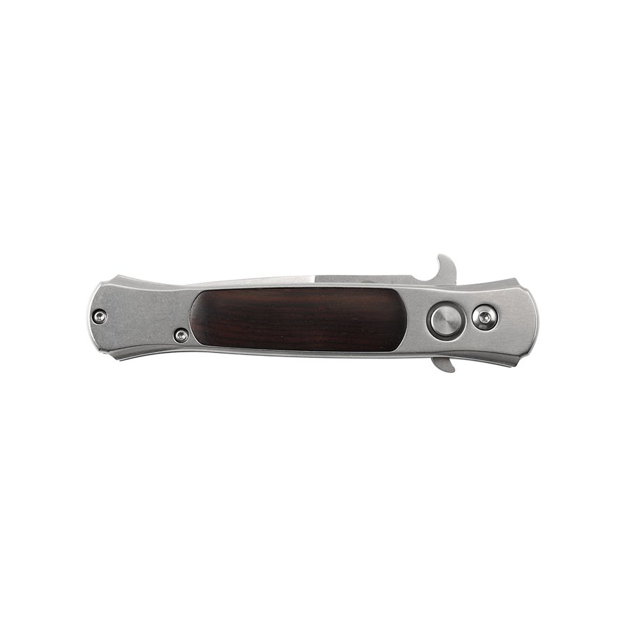 Автоматический механизм открытия лезвия срабатывает после нажатия на кнопку, расположенную в передней части рукояти. В целях безопасности кнопка практически не выступает над поверхностью рукояти, а это является гарантией того, что механизм не сработает от случайного нажатия. Чтобы спрятать лезвие, следует нажать на кнопку и сложить его в рукоять.