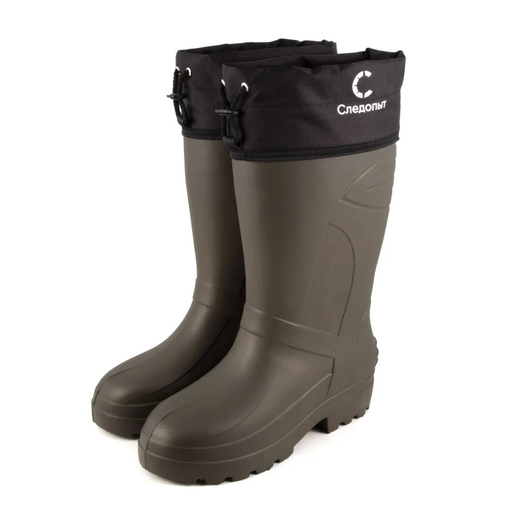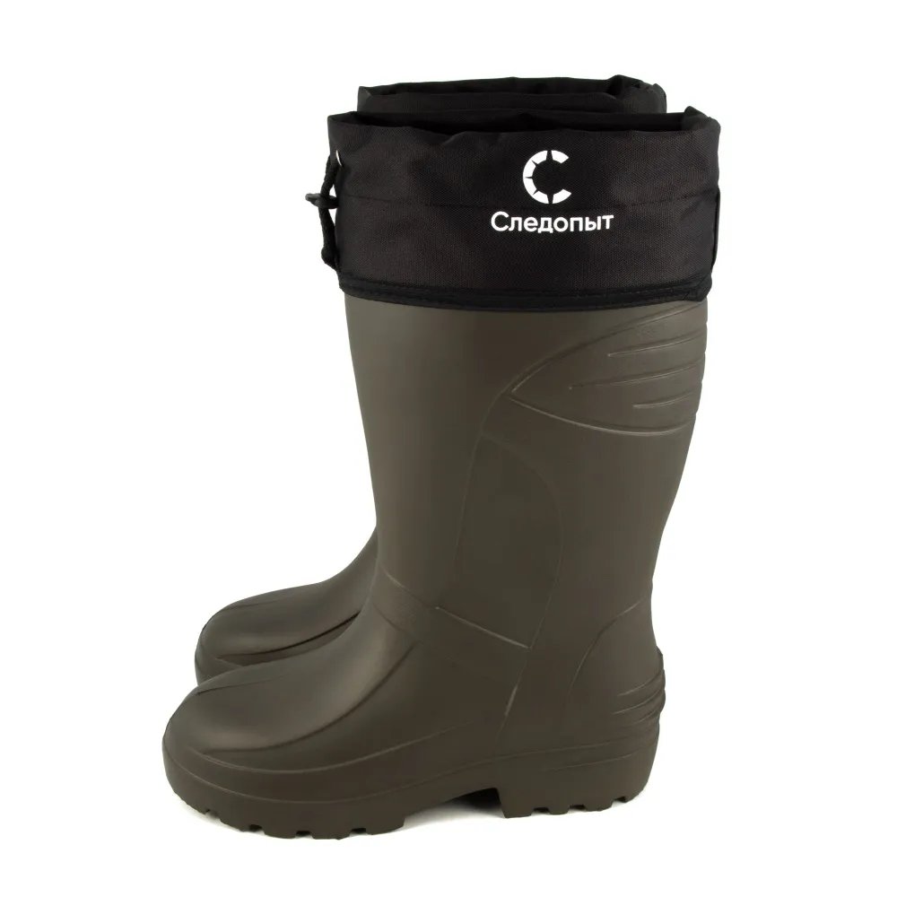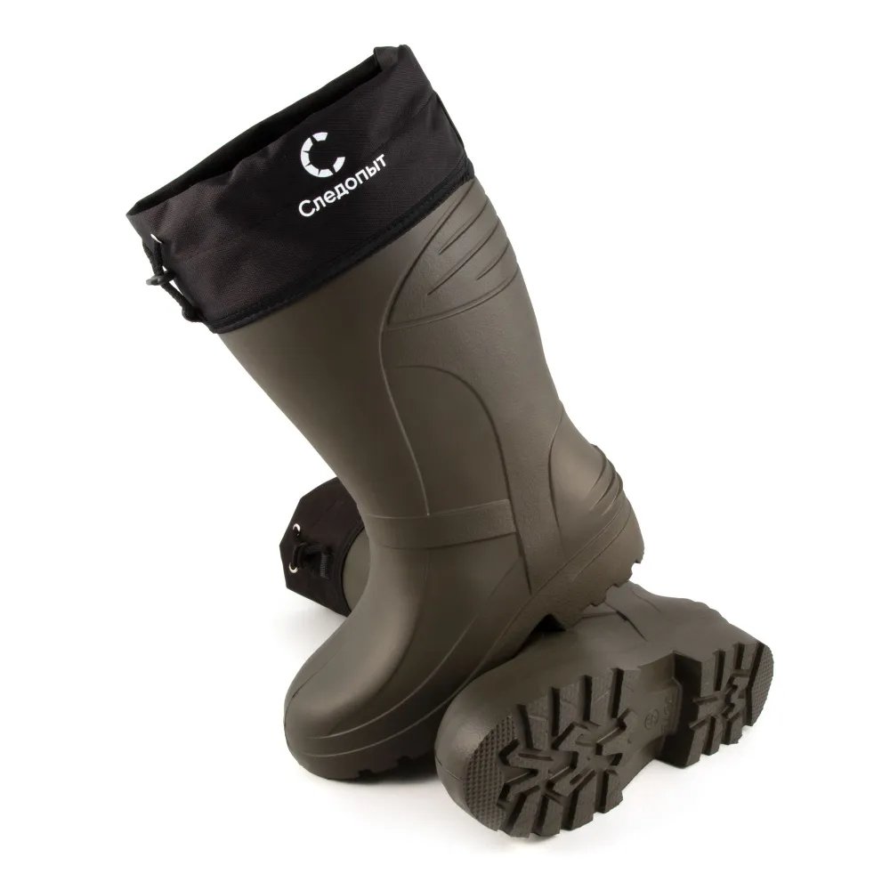 Сапоги Следопыт изготовлены из материала ЭВА, который обладает высокой износостойкостью, мягкостью, лёгкостью, водонепроницаемостью, эластичностью. Не твердеет и не трескается на морозе.