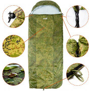 - Надёжная молния с двухсторонней собачкой позволяет закрывать спальник как изнутри, так и снаружи