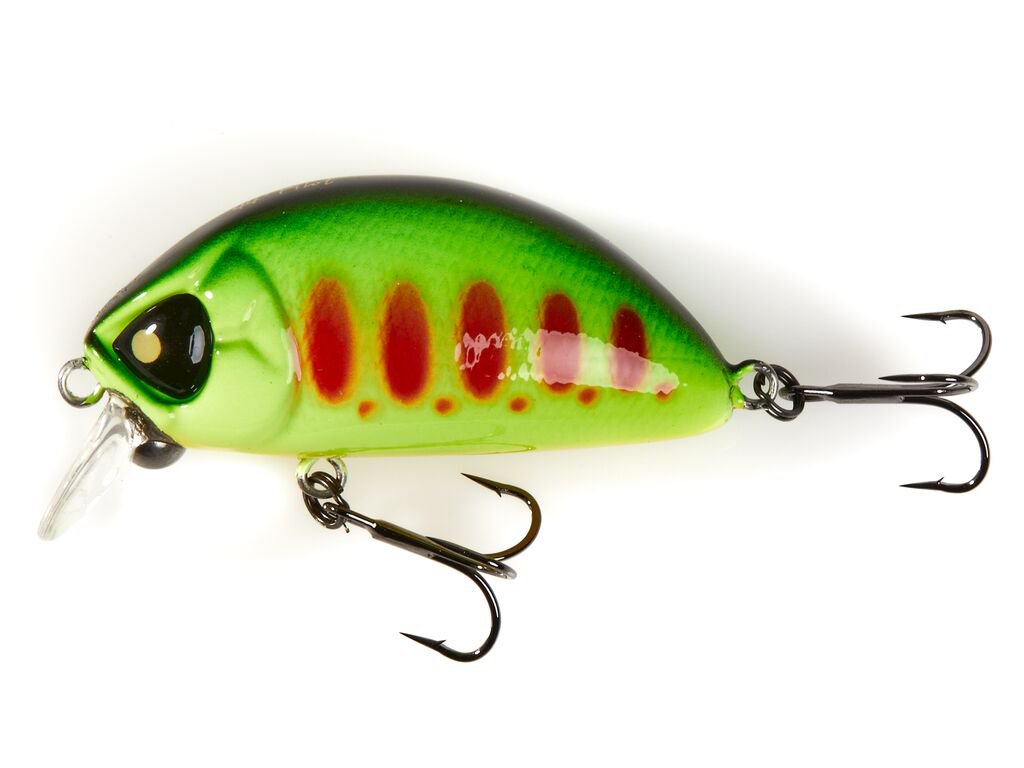 Этот небольшой воблер, с пухлым телом и длиной 33 мм и 44 мм, относится к приманкам класса крэнкбейт и изготавливается только в плавающей версии с небольшой заглубляющей лопастью. Максимальное заглубление приманки, при быстрой проводке, составляет всего 20 см.