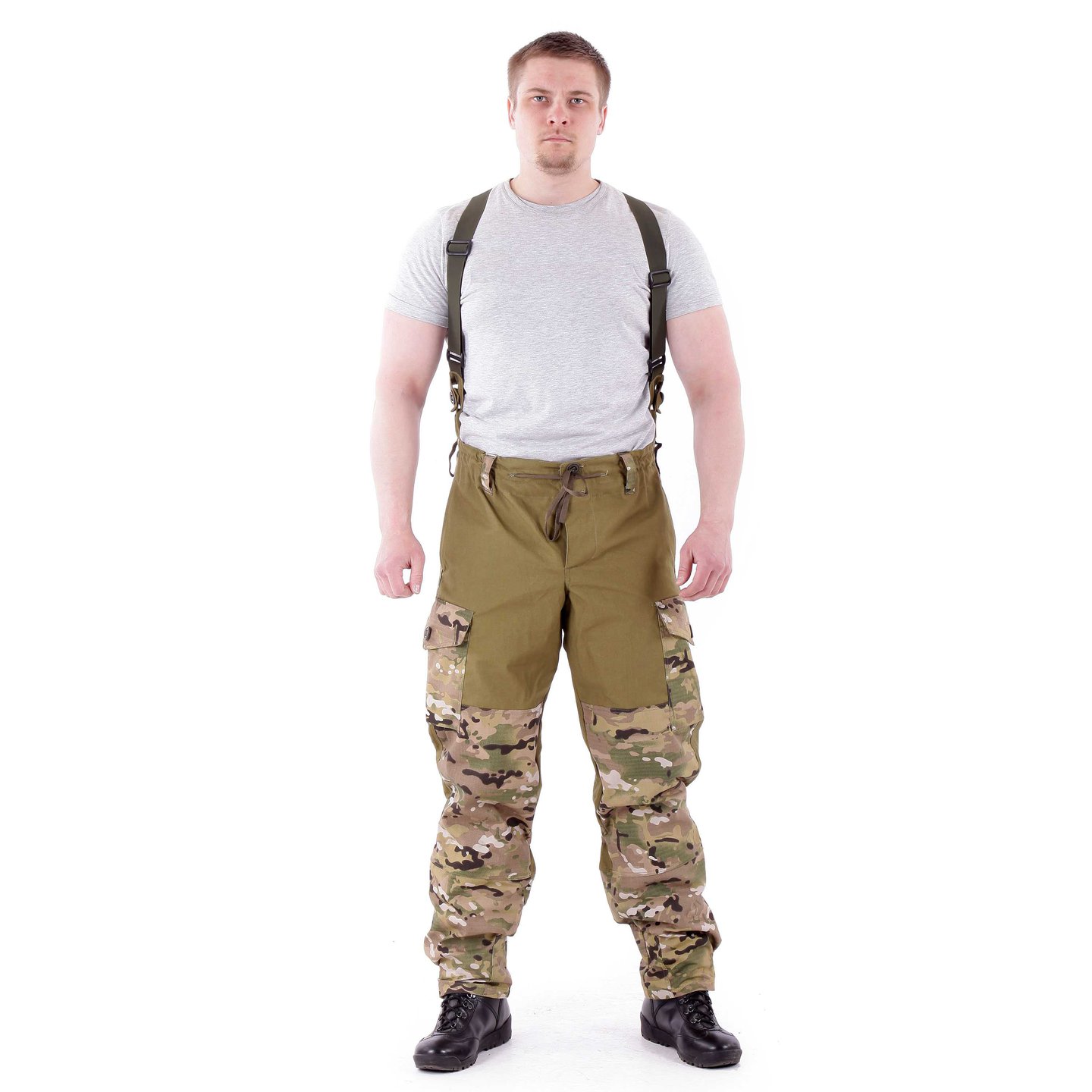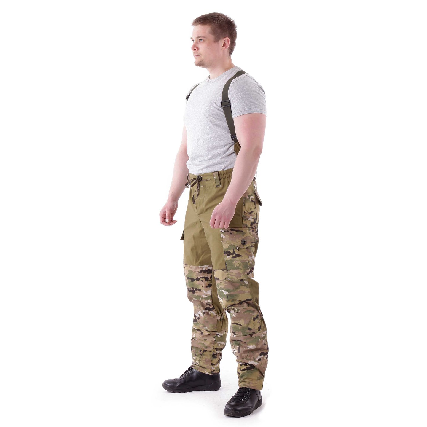 Производитель предусмотрел традиционные шлёвки для поясного ремня. У этой версии Горки они имеют увеличенный размер и ширину. Подтяжки съёмные идут в комплекте, крепятся к специальным шлёвкам, которые имеются на поясе брюк.