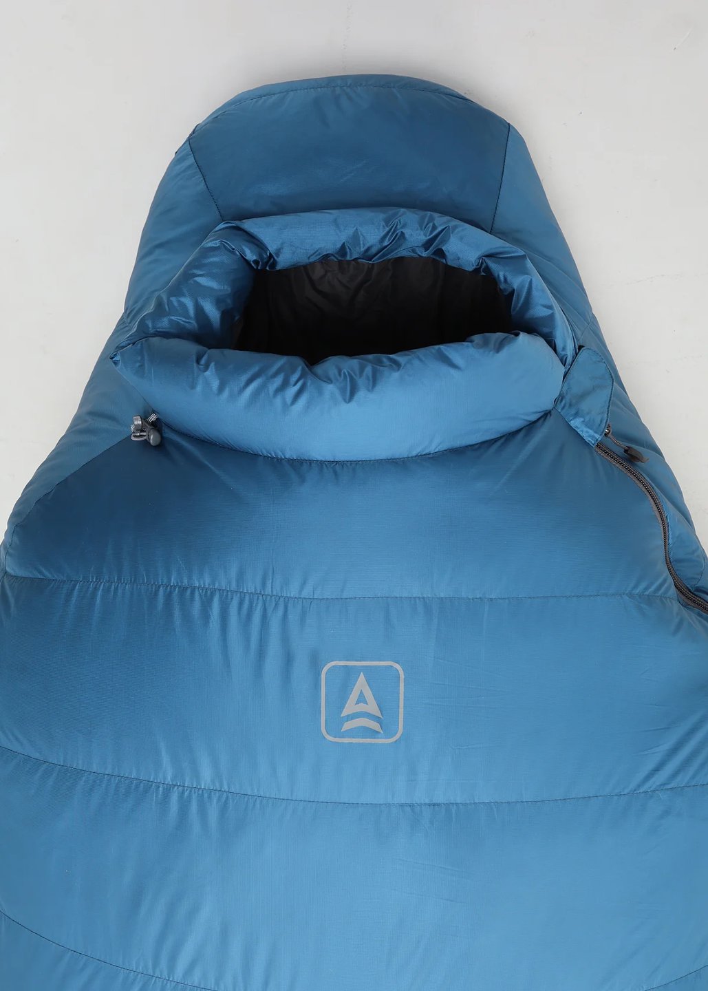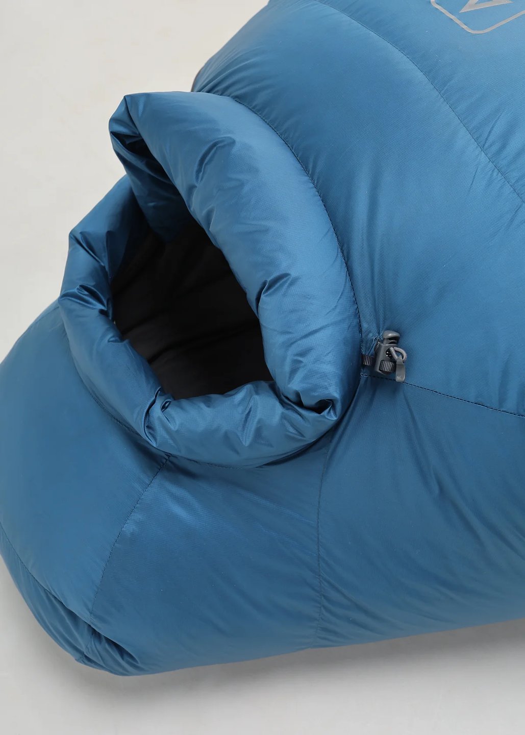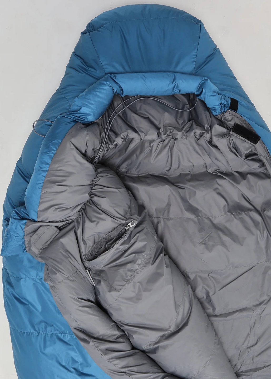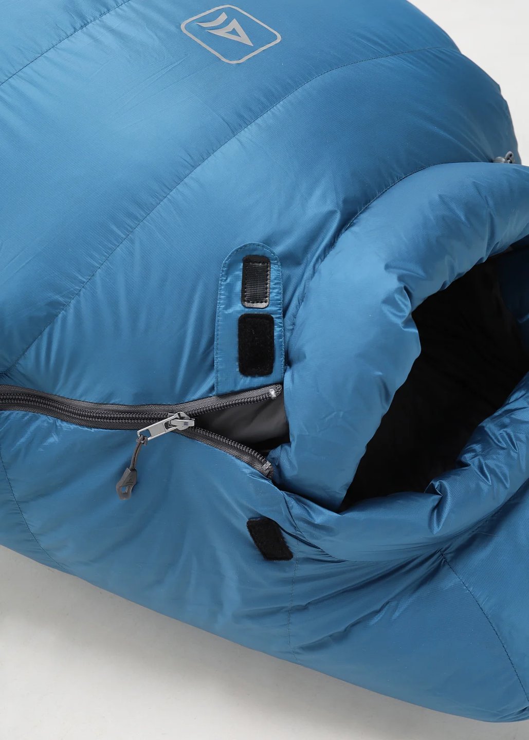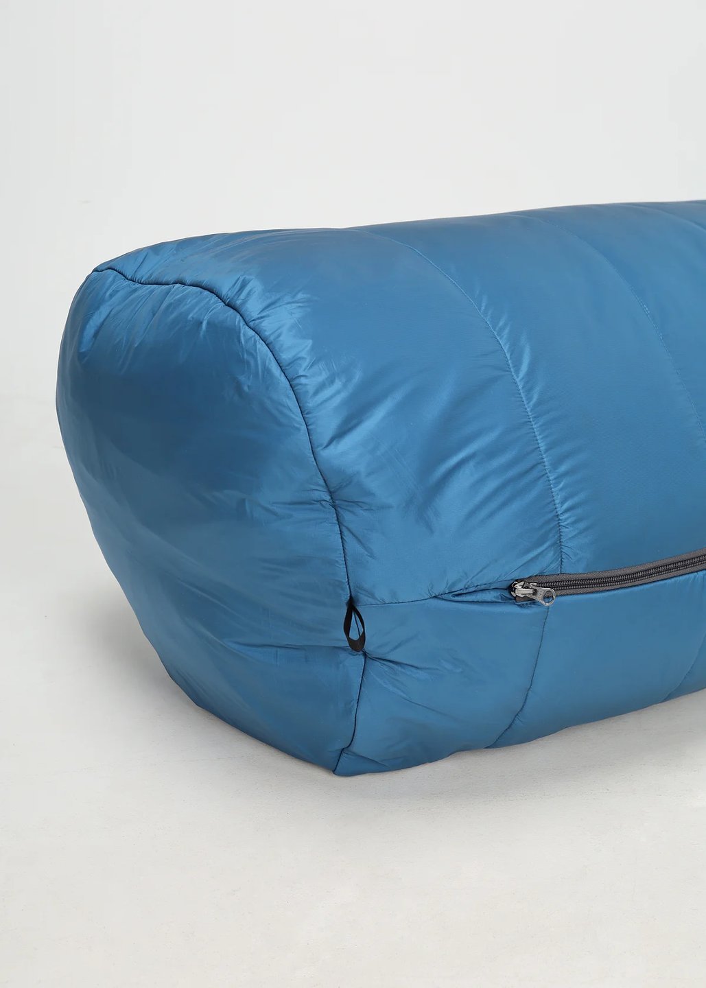 - Дополнительный слой синтетического утеплителя в районе ступней для дополнительной теплоизоляции и для уменьшения вероятности подмокания пуха при контакте с палаткой