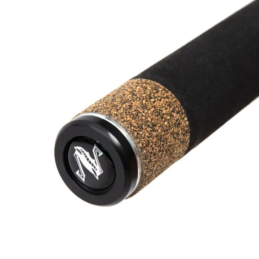 Рукоять выполнена комбинированная: EVA + пробка. Качественная фурнитура также способствует комфортной ловле: надежный винтовой катушкодержатель и усиленные пропускные кольца со вставками SiC.