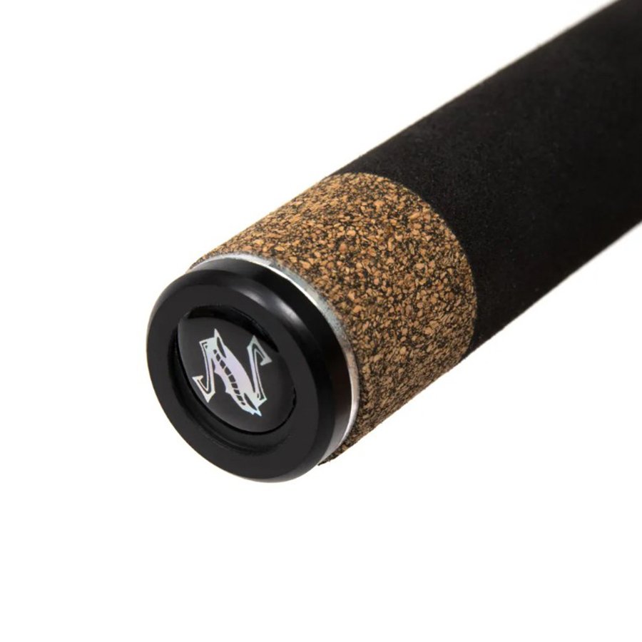 Рукоять выполнена комбинированная: EVA + пробка. Качественная фурнитура также способствует комфортной ловле: надежный винтовой катушкодержатель и усиленные пропускные кольца со вставками SiC.