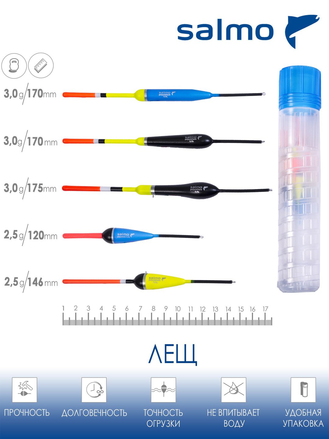 Набор поплавков Salmo PU Лещ в тубусе 5 шт