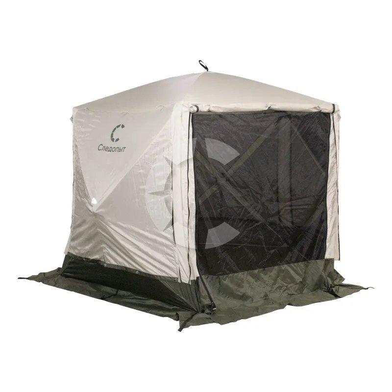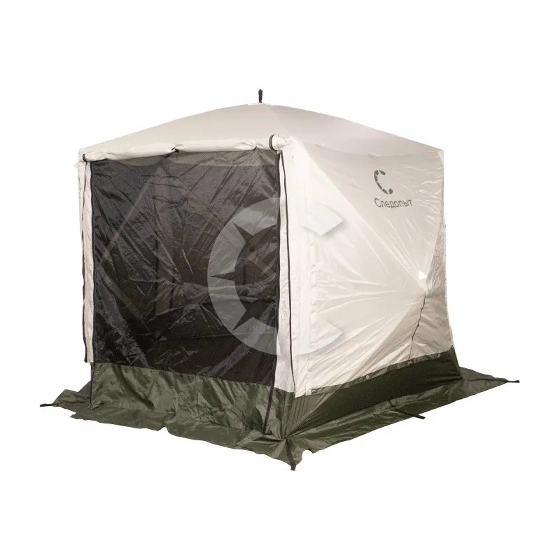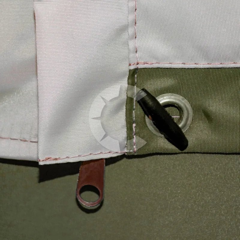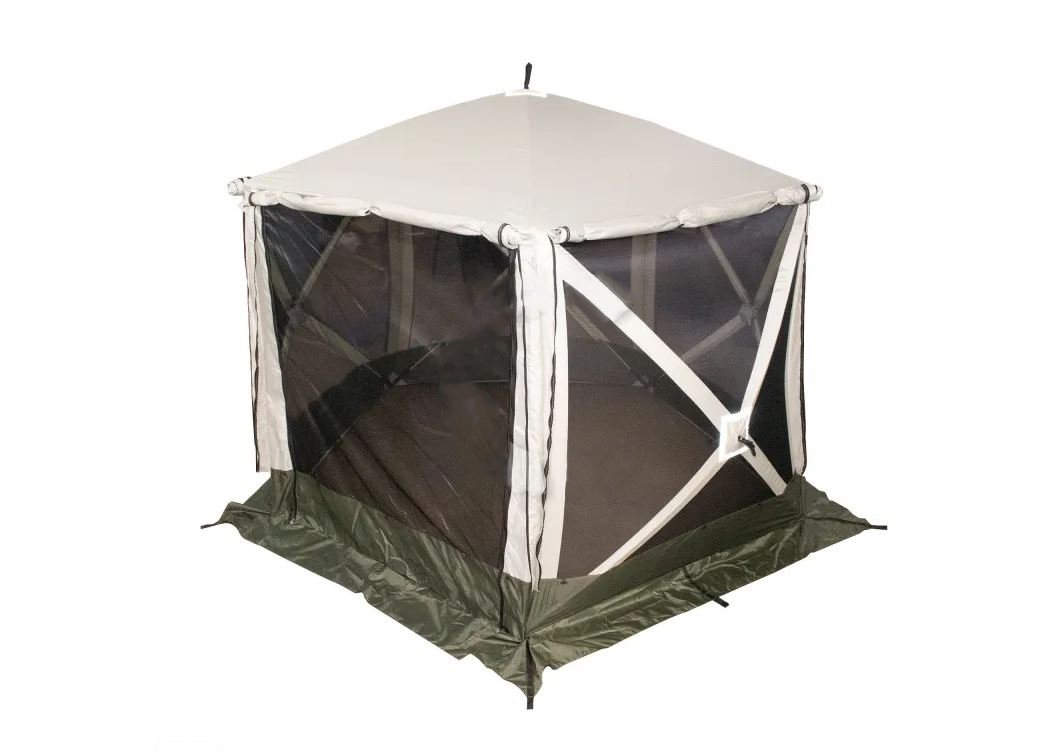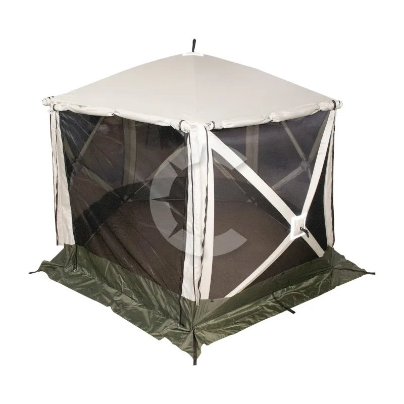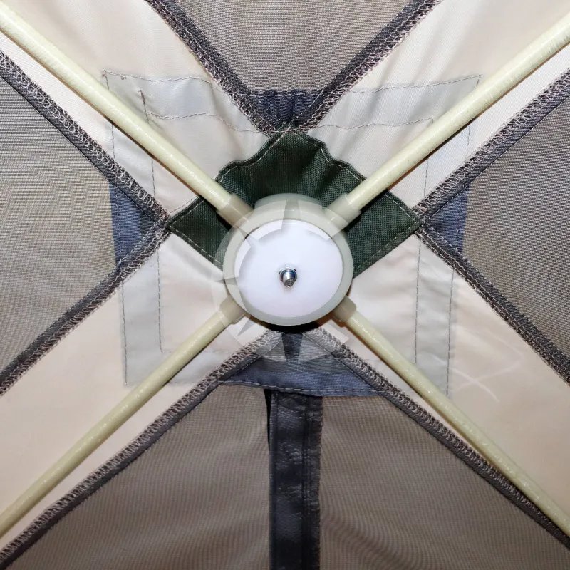Каркас изготовлен из прочного стеклопластикового гладкого прутка толщиной 10 мм. В качестве материала использована надежная ткань Oxford 300D WR PU 3000. В нижней части к шатру пришита внешняя юбка.