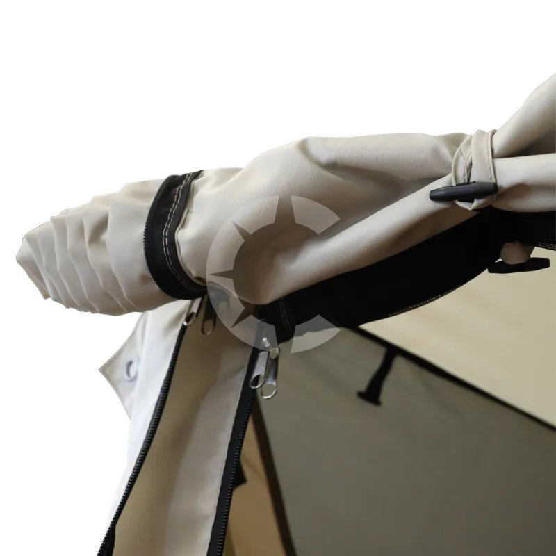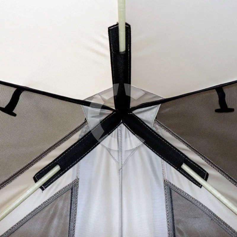 Внутри имеются карманы для хранения мелочей. Для хорошего освещения внутреннего пространства на каждой из пяти сторон шатра располагаются большие окна с москитной сеткой для защиты от насекомых, а для защиты от дождя они закрываются занавесами.