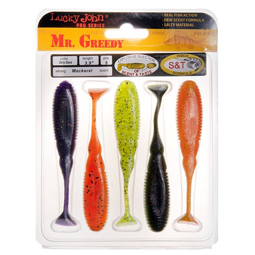 Виброхвосты съедобные Lucky John Pro Series Mister Greedy 3.9" (9.9см) 5 шт mix1