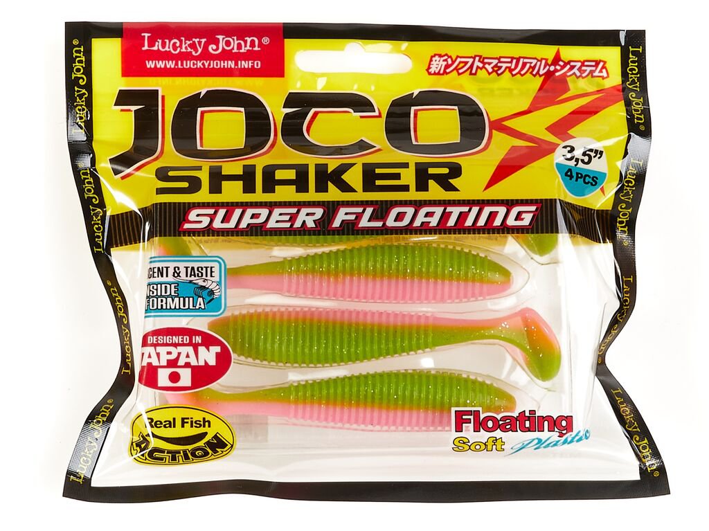 Приманка имеет специальный "карман" для офсетных крючков, что не маловажно при ловле в закоряженных местах водоемов. Joco Shaker Super Floating производится в следующих размерах: 2,5" - для ловли окуня, 3,5" - для ловли окуня и судака, 4,5" - для ловли щуки.