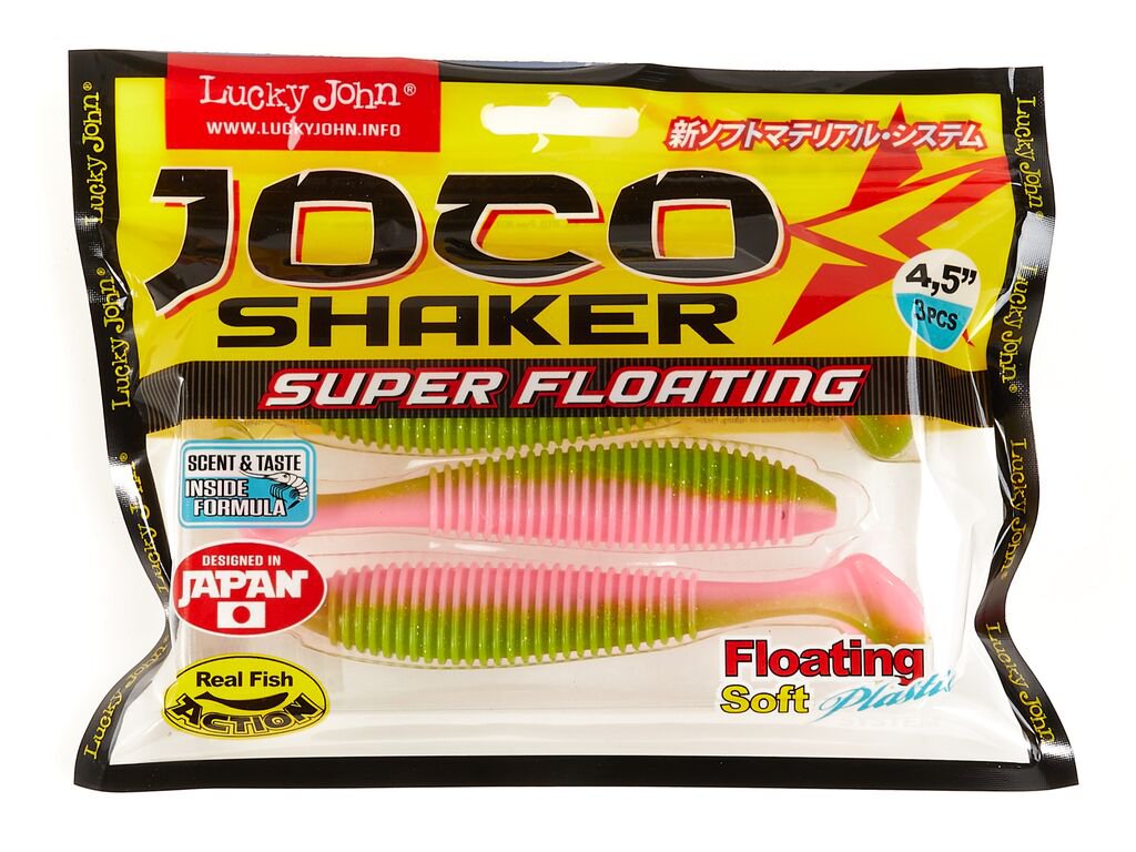 Приманка имеет специальный "карман" для офсетных крючков, что не маловажно при ловле в закоряженных местах водоемов. Joco Shaker Super Floating производится в следующих размерах: 2,5" - для ловли окуня, 3,5" - для ловли окуня и судака, 4,5" - для ловли щуки.