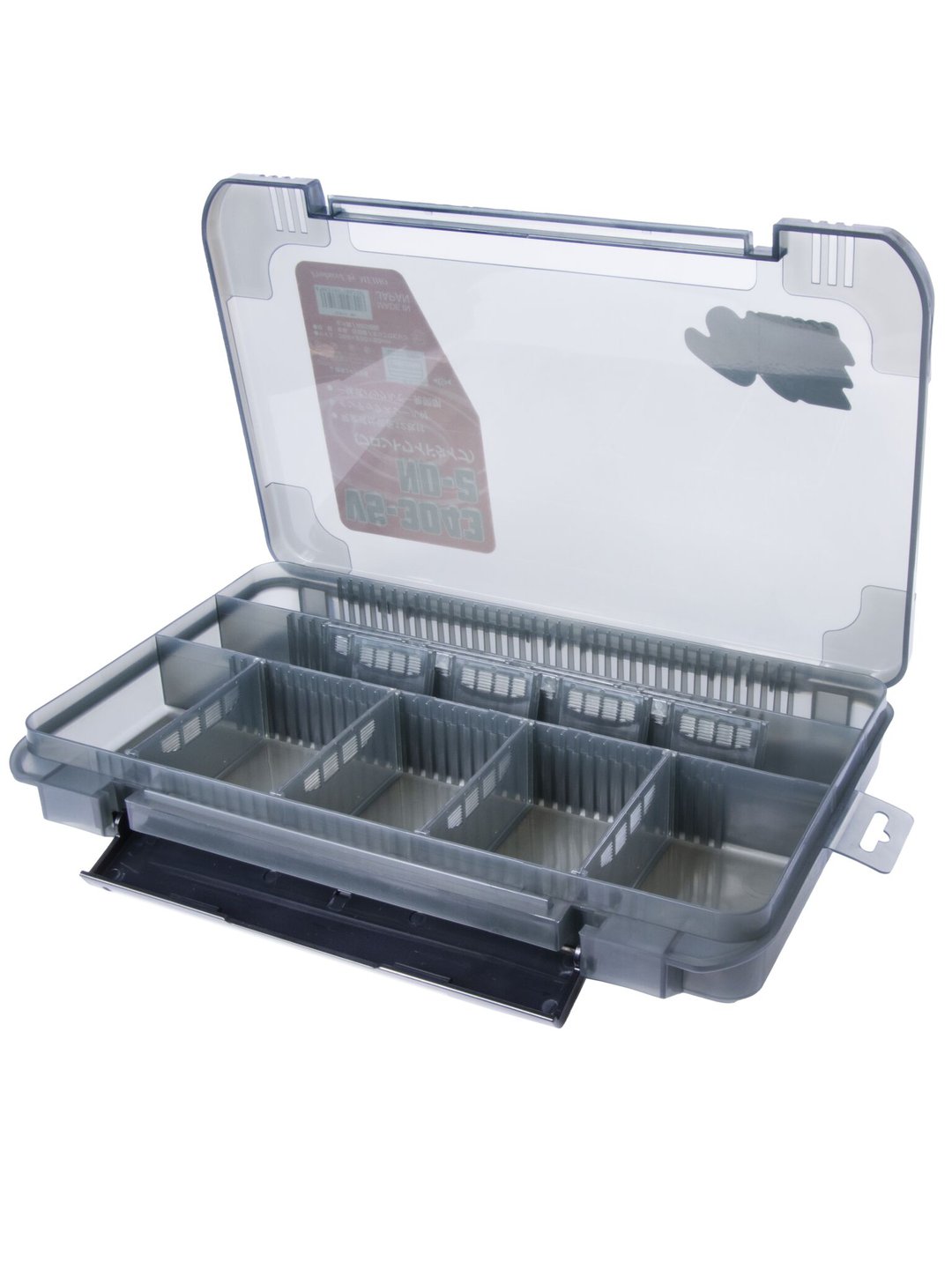 - 12 съёмных перегородок (4 средних, 8 маленьких) с системой "микро шага" Meiho Micro Rib System