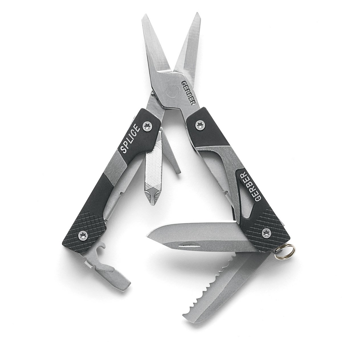 Модель Splice Pocket Tool от бренда Gerber представляет собою компактный вариант мультиинструмента. В отличие от полноразмерных моделей, его центральный инструмент &mdash это ножницы. Ну а в рукоятках размещаются прочие компоненты. Это два небольших ножа: с ровной и зубчатой заточкой, две отвертки разного размера с плоским сечением, одна крестовая отвертка с пилочкой, открывалка для бутылок. Благодаря такому набору, инструмент будет полезен и в ежедневной практике, и во время поездок на природу. Он без труда справится со множеством хозяйственных или ремонтных задач.