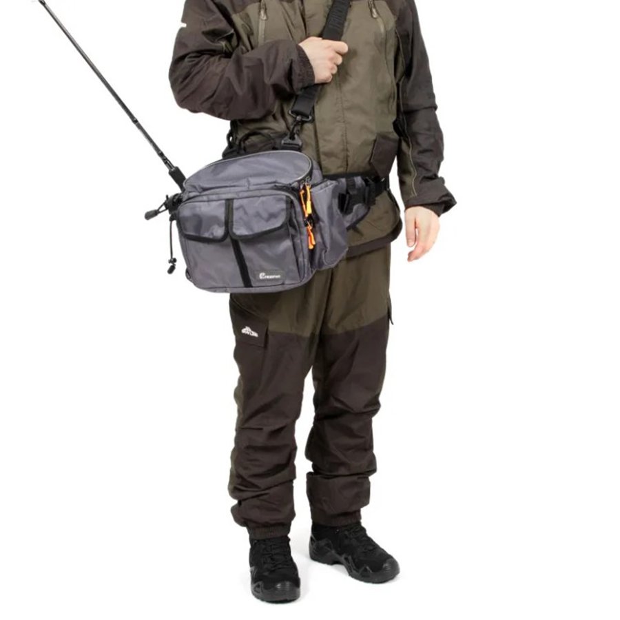 Сумка рыболовная Fishing Hip Bag - мультипозиционная поясная сумка, преимущественно предназначенная для забродных видов ловли, но также с успехом может использоваться в условиях ловли в стиле "street-fishing".