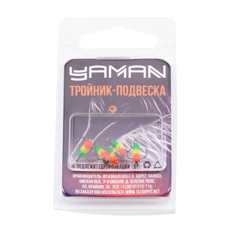 Крючок-тройник Яман Светофор (флюоресц., с глазком, 5 шт) №16