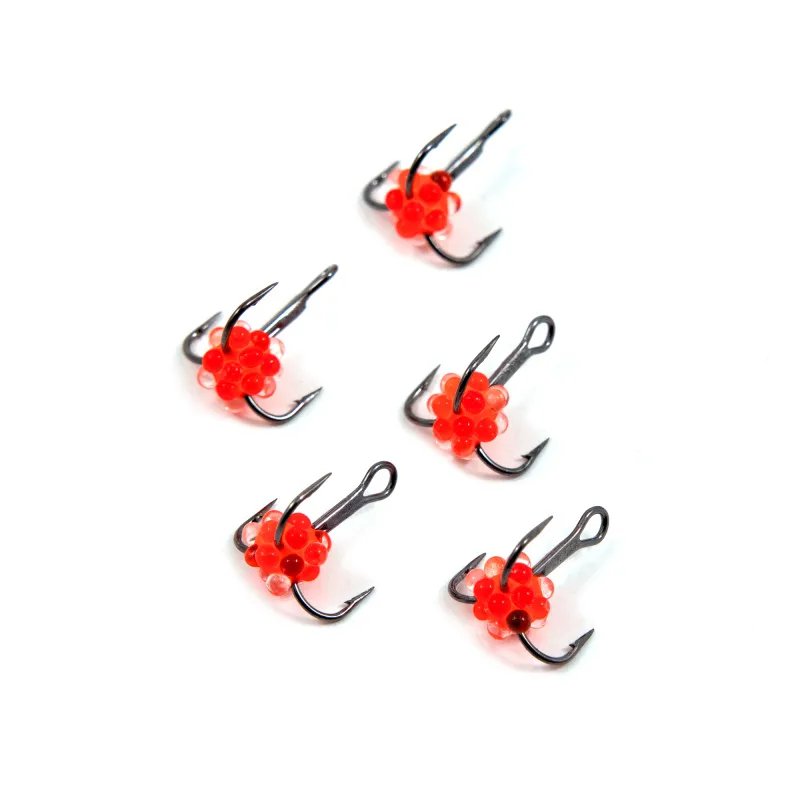 Крючок-тройник Яман (флюоресц., с икринкой, 5 шт) флуоресцентный красный, №16