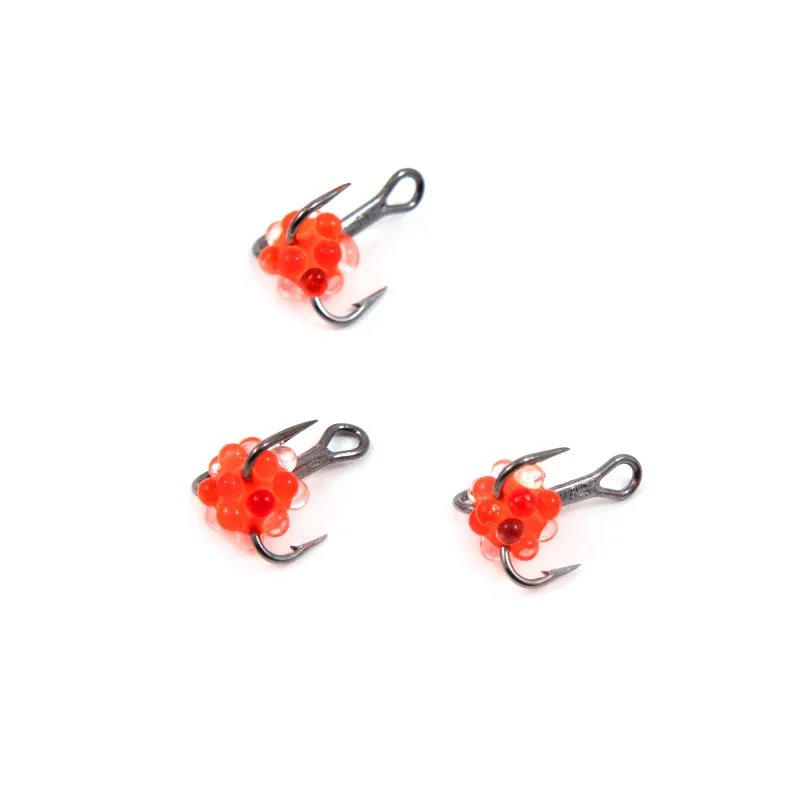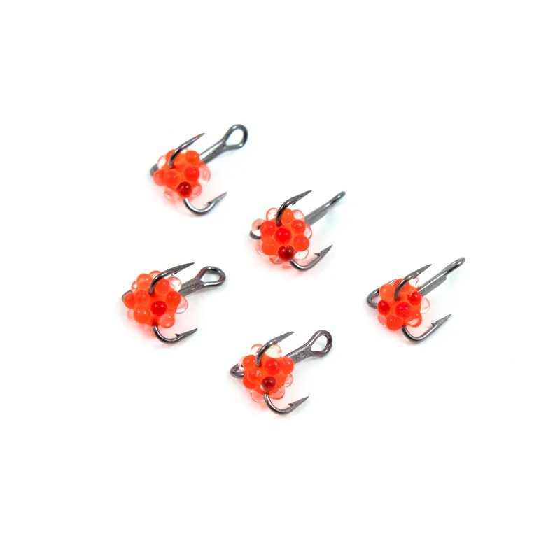 Крючок-тройник Яман (флюоресц., с икринкой, 5 шт) флуоресцентный красный, №18