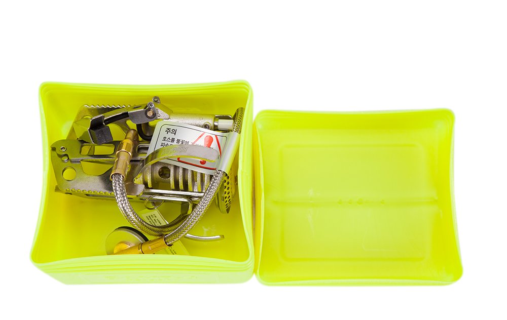 Газовая горелка компактно складывается в пластиковый кофр для транспортировки. Оснащена пьезоподжигом.