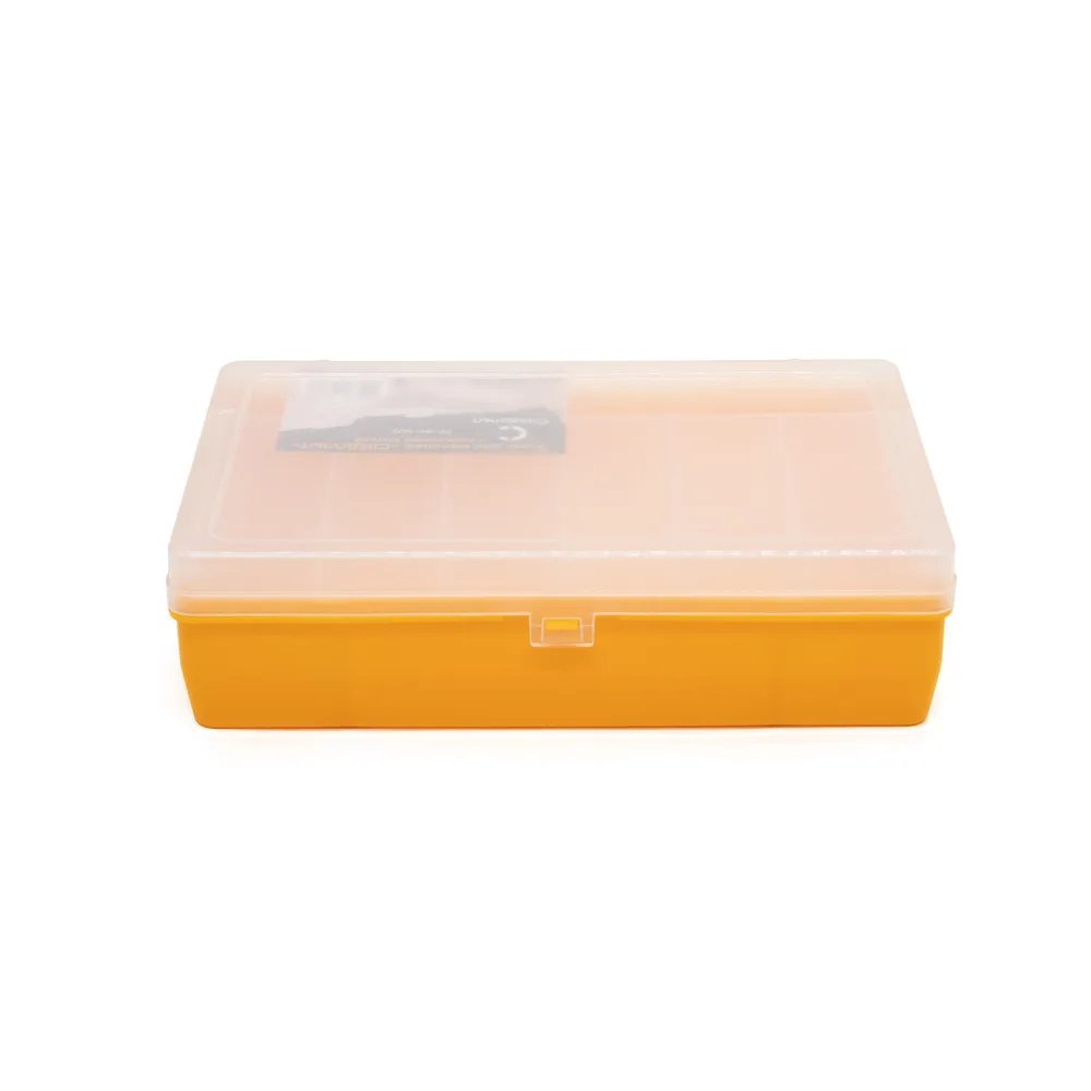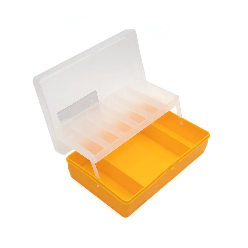 Удобный и практичный бокс для хранения и перевозки приманок, воблеров и блесен. Имеет прочную защелку и поднимающуюся полку на 6 отделений.