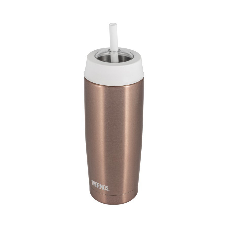 Достаточно широкое горлышко позволяет помещать в термостакан кубики льда. Через прозрачную крышку можно видеть оставшееся количество напитка. В крышке термостакана предусмотрено отверстие для трубочки, которая входит в комплект изделия. Диаметр трубочки подходит как для жидких, так и густых напитков, смузи и коктейлей. Поскольку крышка не является герметичной, термостакан рекомендуется для настольного применения. Эргономичная форма термостакана позволяет с комфортом держать его в руке.
