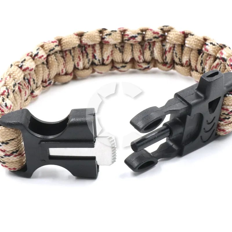 Фастекс имеет дополнительную функцию - свисток и огниво. Браслет можно переплести под любой размер (изначально подходит под размер средней мужской руки).