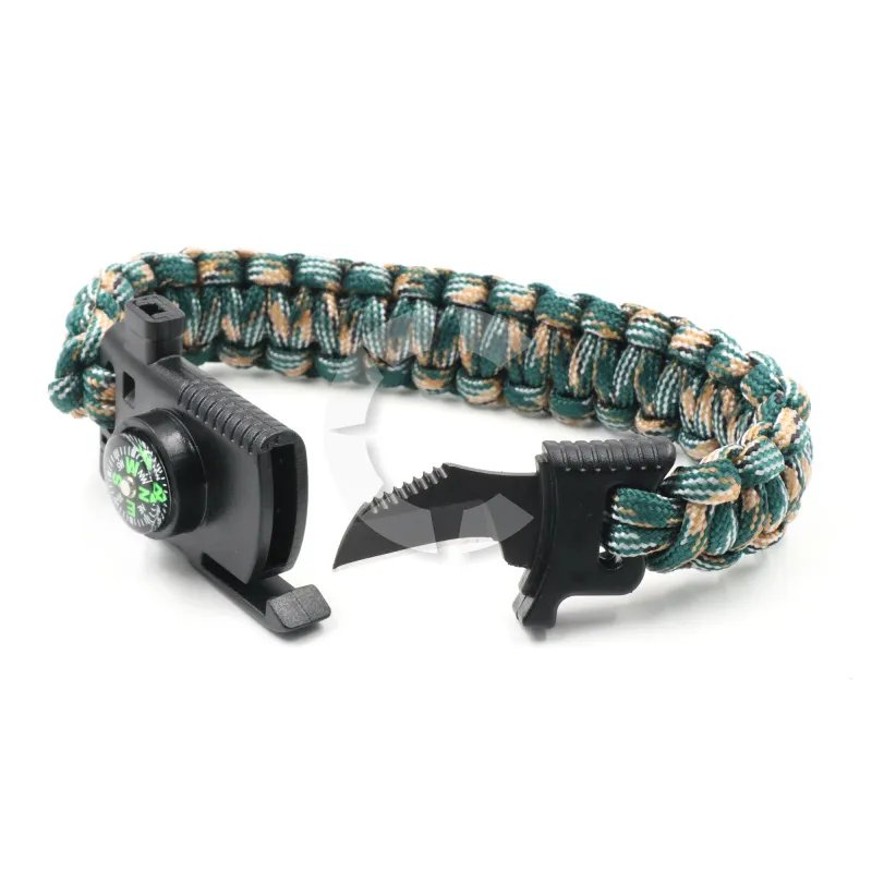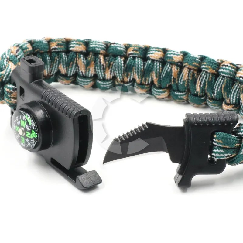 Паракордовый браслет со свистком, лезвием, компасом и огнивом