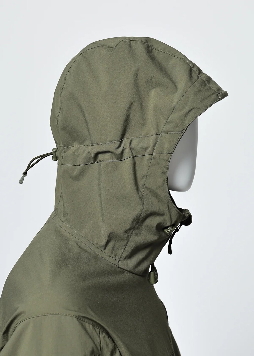 - Капюшон регулируется в двух измерениях эластичным шнуром с фиксаторами Duraflex®: утяжка вокруг овала лица (лишние концы шнура выведены наружу основания воротника для быстрой регулировки) и утяжка объема (фиксатор на затылке). На изнанке в основание воротника вшита вешалка