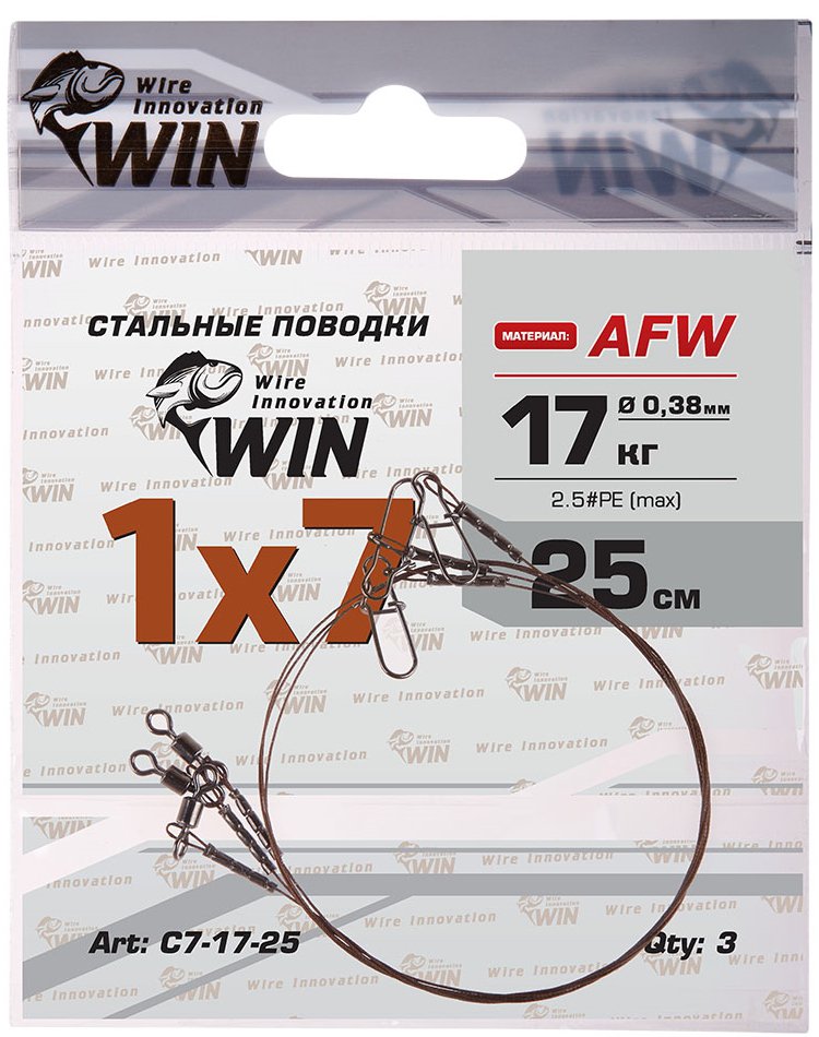 Поводки Win 1х7 (AFW) (3 шт.) 17 кг 25 см
