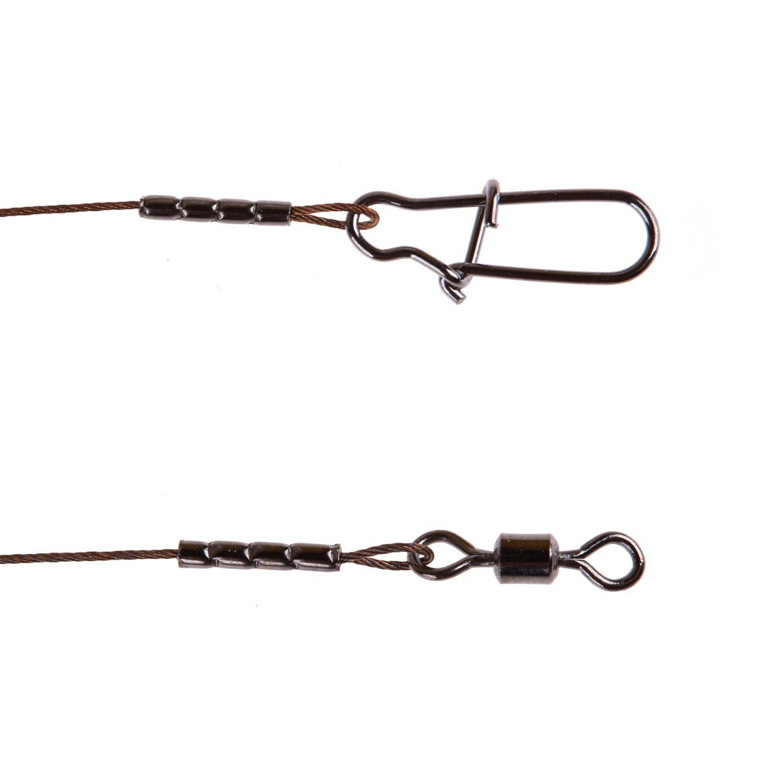Изготовлены из материала 1х7 Surfstrand Leader Wire американской компании AFW. Сплетены из 7 стальных нержавеющих проволок, имеющих маскировочное покрытие CAMO, достаточно гибкий и надёжный материал.